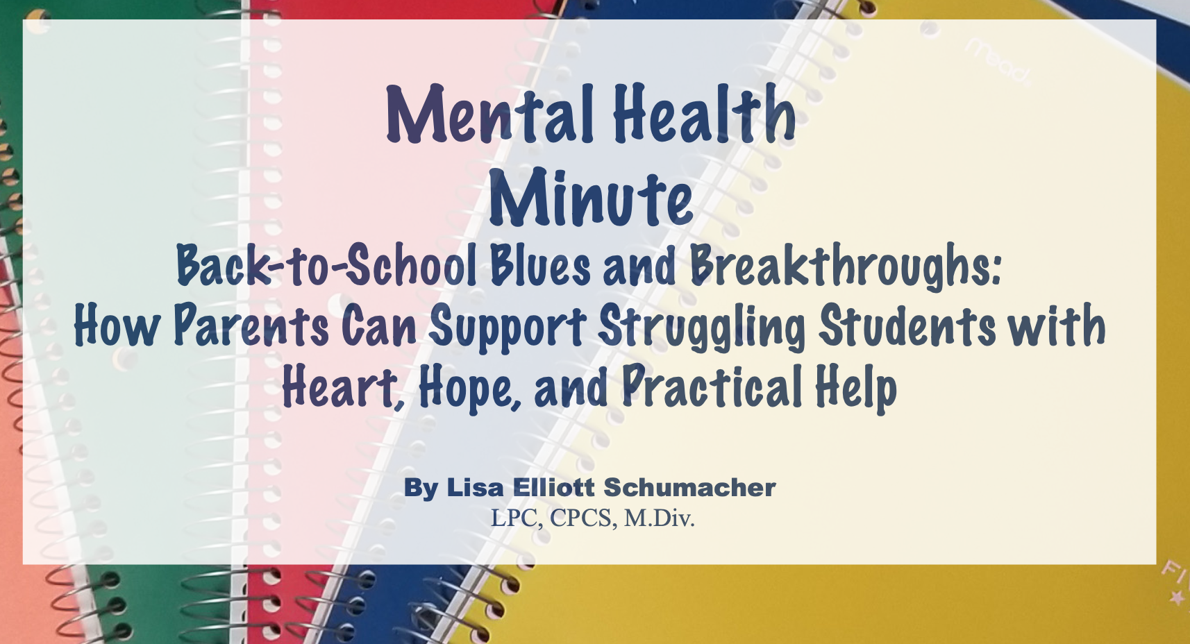 By Lisa Elliott Schumacher LPC, CPCS, M.Div.