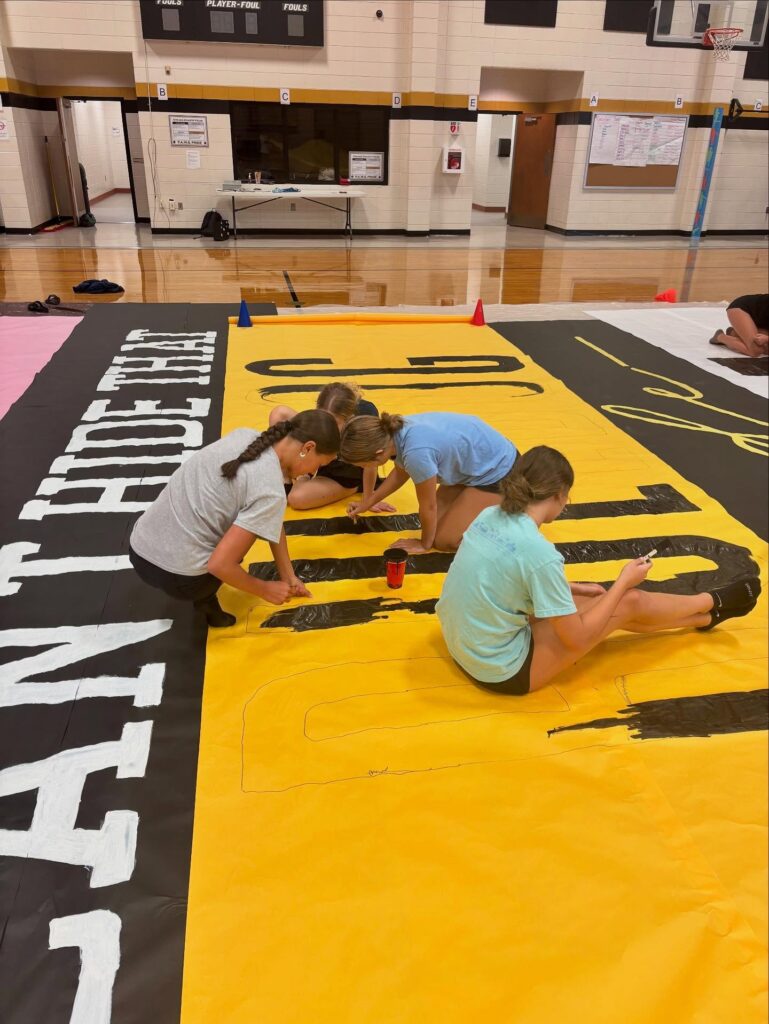 Addie Vance, a junior cheerleader at MP, adds on by stating, “After long and tiring practices every Thursday to prepare for the games, we travel to the freshman gym to tape the signs to the poles that provide the structure needed so the boys can run through at the sound of the band, signifying the start of the game.”